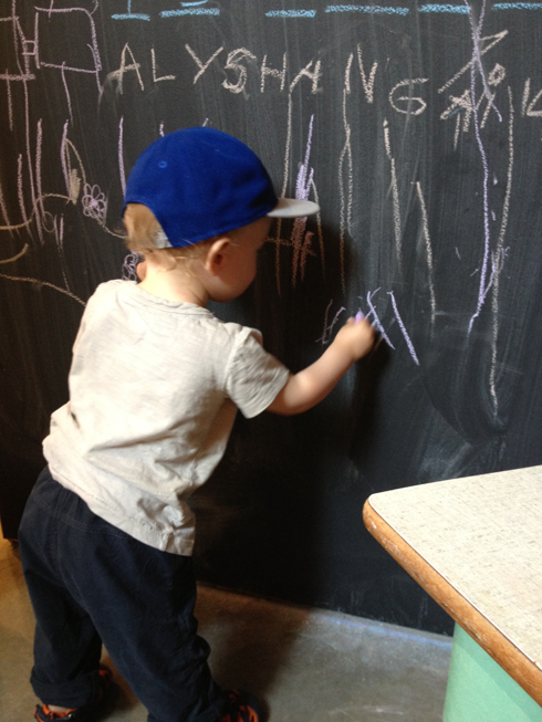 Les premiers traits de craie de notre petit homme dans la belle boutique de Mini Mioche