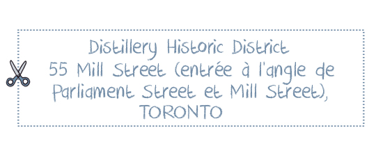 Heures d’ouverture: peuvent varier selon la période de l’année ou selon les commerces; pour plus de précisions, consulter le site Internet du Distillery District.