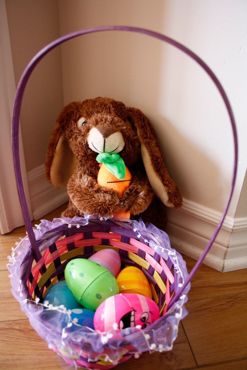 Certains aiment disperser des œufs un peu partout et laisser les enfants libres de les trouver. Puisque j’ai seulement une fille, j’aime bien lui faire une chasse plus personnalisée. Pour préparer l’événement, je visite les magasins à un dollar pour dénicher quelques trouvailles. J’y trouve facilement des œufs en plastique où je peux insérer des petits mots ou indices. J’achète aussi un panier ou un sac afin que l’enfant puisse terminer la chasse avec tous les œufs qu’il aura trouvés. Pour pimenter le tout, j’ai offert à ma fille, cette année, un lapin en toutou ainsi qu’une passe pour les cheveux avec des lapins afin qu’elle soit bien « accompagnée » pour sa chasse.