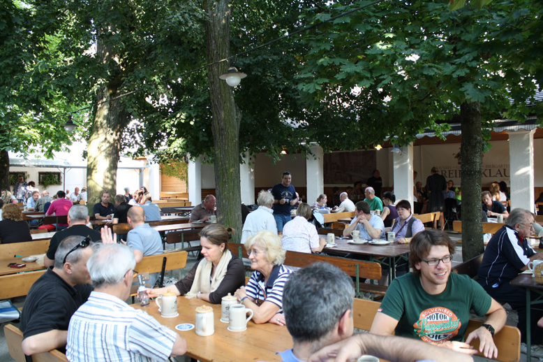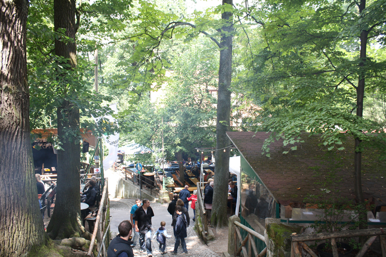 Ce qui est encore plus fascinant de Bamberg, c’est qu’elle abrite de nombreux kellers (en Franconie, on utilise ce terme, qui veut dire cave, car les brasseries ont, depuis des centaines d’années, fait vieillir leurs bières dans leurs caves annexées au jardin. Vous pourrez aussi souvent lire le terme biergarten en Allemagne). Le concept est simple : trouvez un vaste endroit extérieur, un peu boisé de préférence, mettez-y de nombreuses tables à pique-nique, vendez la bière que vous brassez sur place et invitez tout le village à venir fêter! Si vous avez un petit creux, vous pourrez acheter quelques plats de saucisses et des bretzels, bien entendu, mais n’hésitez pas à apporter votre lunch, c’est ce que les locaux font. Les enfants? Vous les amenez, bien entendu! De nombreux propriétaires de kellers leur ont même aménagé une aire de jeux… Génial comme concept! Dois-je vous dire où nous passions toutes nos soirées?