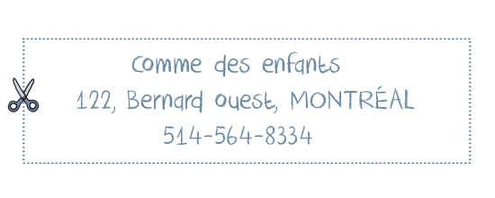Sous peu, la propriétaire prévoit aménager l’arrière de la boutique en atelier de création pour les enfants. Ainsi, vous pourrez y suivre des cours d’artisanat, de bricolage, d’architecture, etc. Le projet n’est pas encore tout à fait défini, mais suivez leur page Facebook pour être tenu au courant. (Vous pouvez également consulter leur site Internet et les suivre sur Twitter: @commedenfants)