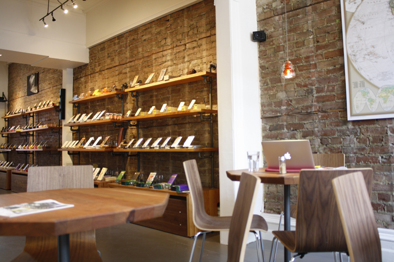 Il y a aussi un petit coin bistrot où vous pourrez déguster un chocolat chaud pur de la compagnie Marou, accompagné d’un morceau de chocolat de la même origine afin de comparer les deux. Vous allez adorer! Peut-être un peu trop intense pour vos petits, les employés peuvent « allonger » le chocolat avec du lait pour eux. Plaisir assuré! N’oubliez pas aussi de goûter à une de leurs infusions de grué, qui est l’éclat de la fève de cacao, que la boutique peut vous servir. Personnellement, je n’avais jamais goûté à quelque chose du genre, mais j’ai été renversée du goût complexe, mais non sucré, de ce breuvage. D’ailleurs, si vous aimez, vous pourrez aussi rapporter du grué à la maison ainsi que certaines pastilles de chocolat en vrac.