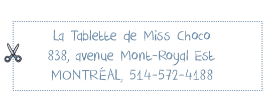 Depuis quelques mois, une nouvelle boutique – de laquelle vous deviendrez accroc à la seconde où vous y mettrez le pied – a ouvert ses portes sur le plateau Mont-Royal, directement sur l’avenue du même nom et tout près du métro. La Tablette de Miss Choco est un petit magasin spécialisé en barres de chocolat « pur » importées d’un peu partout à travers le monde qui vous feront pleurer de plaisir… vraiment!