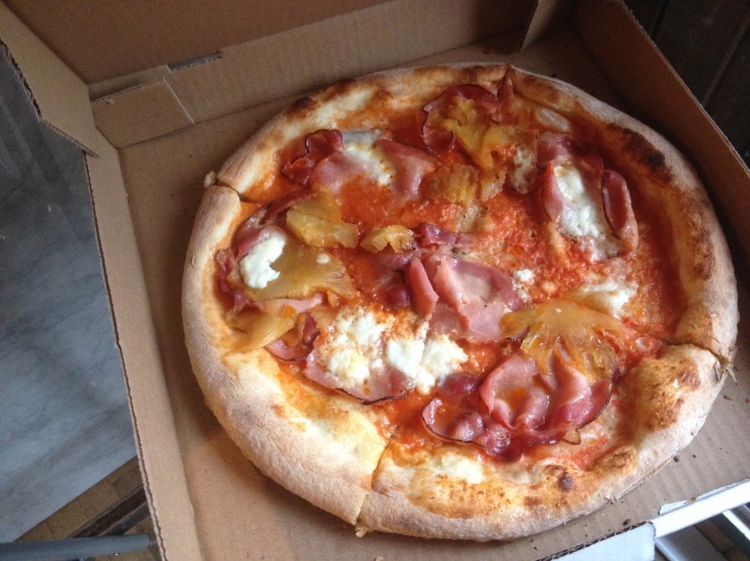 Ma préférée à ce jour: l’«Hawaïenne», garnie de jambon à l’érable fumé maison, d’ananas rôtis au four, de mozzarella di Bufala du Québec et d’huile épicée…