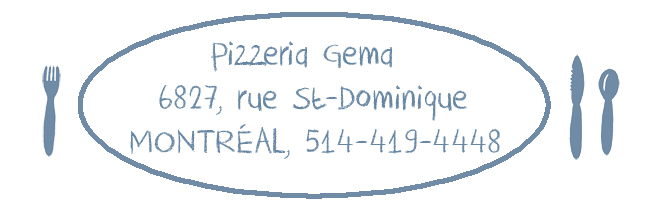 En poussant la porte de chez GEMA, vous pouvez vous attendre à un service sympathique et souriant. Lors de l’un de nos plus récents passages sur l’heure du dîner, durant la semaine de relâche, il y avait plusieurs familles avec de jeunes enfants comme nous au rendez-vous. Fiston a partagé avec sa marraine et sa grand-maman la «1889», une pizza fine à la croûte parfaite, à la fois croustillante et moelleuse, recouverte simplement de sauce tomate, de mozzarella di bufala et de basilic frais. (Elle a été engloutie en moins de deux, je n’ai même pas eu le temps de la photographier!) Ses yeux sont devenus encore plus brillants lorsqu’il a aperçu son dessert: une costarde glacée (elle provient de la Laiterie Chagnon) au chocolat belge et recouverte de vermicelles arc-en-ciel.