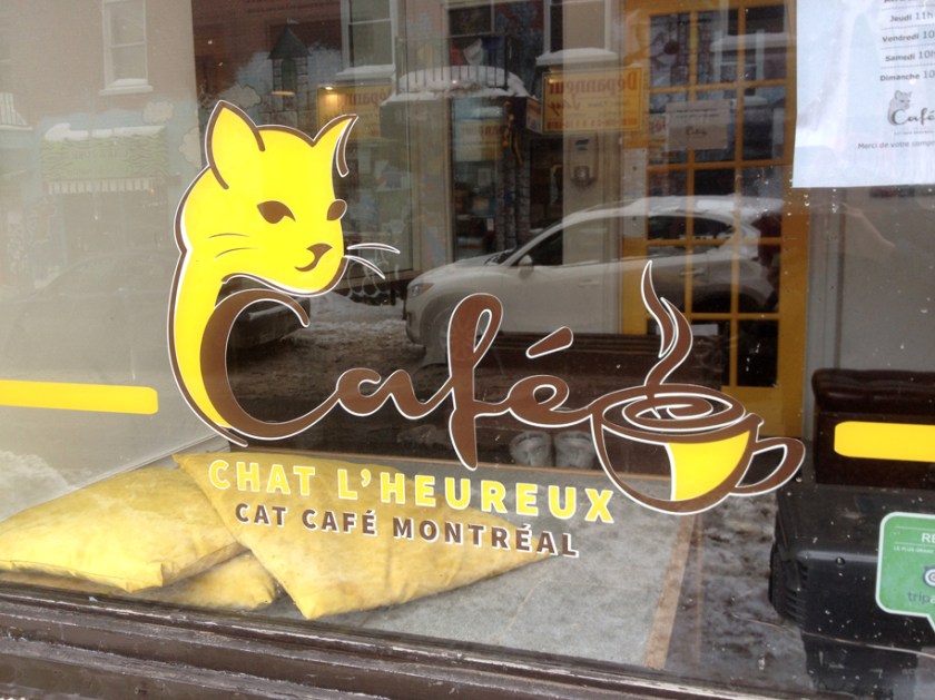 Nous avons ensuite poursuivi notre route jusqu’au Café Chat l’Heureux, situé sur la rue Duluth. L’endroit est l’un des premiers du genre à Montréal: il s’agit d’un restaurant où l’on peut à la fois manger un repas complet et profiter de la compagnie de huit chats, pour qui l’espace et la décoration servent de terrain de jeux et de repos. Pas besoin de vous dire que l’endroit plait énormément aux enfants!