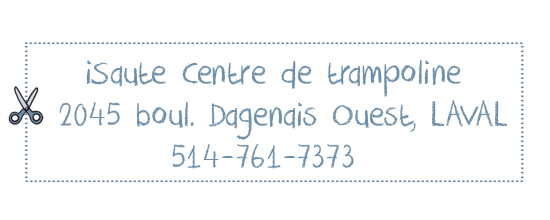 Prix: Le prix étant assez élevé, nous vous suggérons de vous y rendre les vendredis, samedis ou dimanches matins, à 9h, alors que l’endroit est réservé aux petits de six ans et moins: vous pourrez alors sauter avec votre enfant pour seulement 10$. Les tarifs varient à d’autres moments, mais prévoyez environ 12 ou 14$ de l’heure par personne et, si vous voulez sauter avec votre enfant, vous devrez vous aussi payer. Cependant, si vos enfants sont assez vieux pour s’amuser seuls, vous pouvez simplement les attendre près des trampolines et ne pas payer. Si vous avez de jeunes enfants, nous vous suggérons donc très fortement d’y aller lorsque le centre est réservé aux petits, car il y a très peu de gens et l’activité est plus abordable. Pour plus de précisions concernant les horaires et les tarifs, visiter le site Internet d’ISaute Centre de trampoline.