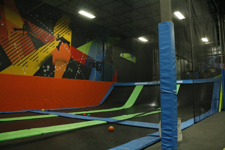 Sur le plancher d’ISaute, on trouve également certains endroits aménagés. Il y a, par exemple, quelques trampolines dans un «enclos» fermé, où l’on peut jouer au ballon-chasseur… Ce n’est vraiment pas évident, surtout qu’aux deux bouts, les trampolines montent vers le plafond, formant ainsi une grande demi-lune. Si vous préférez le basket-ball, vous pourrez vous exercer à faire des paniers en sautant à votre guise.