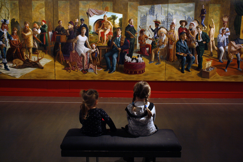 Cette exposition est présentée jusqu’au 17 avril 2016, mais votre billet vous permet de visiter les autres expositions (qui seront tout de même appréciées surtout des plus vieux). D’ailleurs, dans le sac à dos des enfants, on a préparé d’autres activités pour les accompagner dans leurs découvertes. Une très grande toile s’est transformée en « Cherche et trouve » pour les petites filles qui nous accompagnaient.