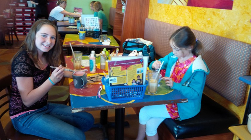 Avant d’être une maman, j’étais une marraine – qui prend son rôle très au sérieux – de deux magnifiques jeunes filles. Depuis plusieurs années, je les invite chez moi le temps d’un week-end, l’été, et c’est l’occasion de faire des activités sans les parents. Je m’efforce de trouver des restaurants qui sortent de l’ordinaire. On cuisine aussi systématiquement ensemble années après années et on fait des sorties. Cette année-là, c’est au Céramic Café que nous avons débuté la fin de semaine. Malgré le fait que ce soit ouvert depuis plus de quinze ans, je n’y avais jamais mis les pieds. J’en suis ressortie enchantée.