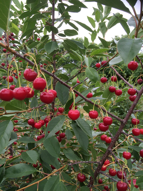 Les cerises que nous avons ramassées (nous avons mélangé les trois variétés) sont à la fois sucrées et acidulées: elles sont dé-li-cieuses en compote et en tarte et n’ont rien à voir avec celles que l’on peut se procurer à l’épicerie. À 5$ la livre, l’investissement est plus que rentable!