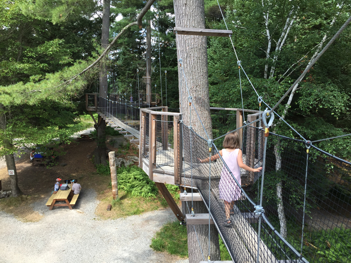 Si vous voulez faire une pause, on vous suggère de vous arrêter à la mi-parcours, où vous trouverez des tables à pique-nique, mais aussi un parcours suspendu, une ferme (avec une maison dans un arbre) et des spectacles. Lors de notre passage, nous avons adoré rencontrer de près les oiseaux de proie. Vous y trouverez aussi des petits comptoirs pour acheter quelques collations et crèmes glacées. Si vous n’avez pas votre lunch, vous pourrez revenir au chalet d’accueil où l’on offre des repas complets simples, mais délicieux. Amusez-vous à vous promener dans les sentiers, à faire plus ample connaissance avec les animaux et à simplement vivre ce beau moment en nature!
