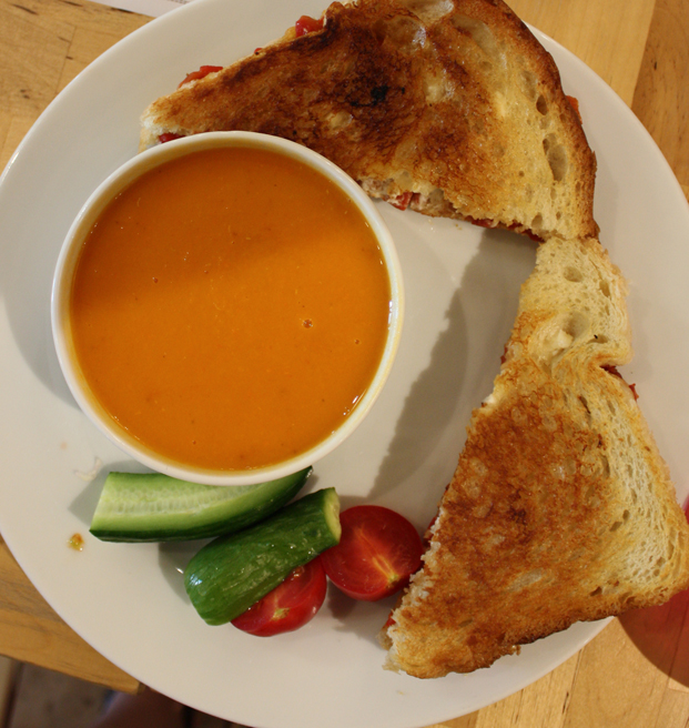 Autre option intéressante: vous pouvez choisir de manger votre lunch (j’avais pour ma part choisi un bon croque-monsieur au fromage de chèvre et aux poivrons grillés, accompagné d’une soupe du jour, aux carottes et au lait de coco) soit à l’intérieur, soit sur une jolie terrasse dans les serres.