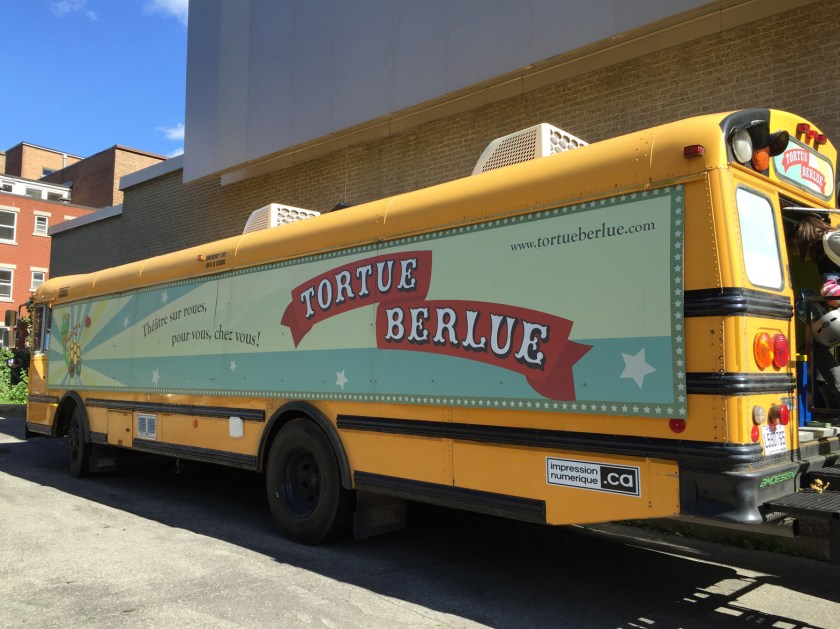 On a vu un théâtre de marionnettes dans un véritable autobus! La pièce « Jérémie a un lion » parlait d’un petit garçon qui a de la peine et qui a de la difficulté à gérer sa colère. Pour tous les détails sur le spectacle, visite leur site Internet. J’espère que l’autobus visitera ton école ou une maison de la culture près de chez toi.