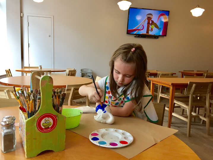 Si vous avez encore de l’énergie après tout cela, vous pourrez tester vos habiletés artistiques avec l’atelier de céramique. Sur place, vos enfants pourront choisir une pièce qu’ils vont ensuite peinturer. Ce qui est génial, c’est que la peinture sèche presque instantanément et que les employés vont immédiatement y appliquer un vernis. Dix minutes plus tard, votre pièce est prête! Rien de plus simple!