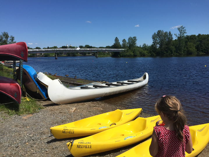 Le lendemain, nous avons profité des commodités offertes au camping. Il y a une grande piscine (qui était cependant extrêmement froide lors de notre passage), un parc pour enfants, des embarcations à louer pour aller sur l’eau et même le parcours D’Arbre en arbre Shawinigan.