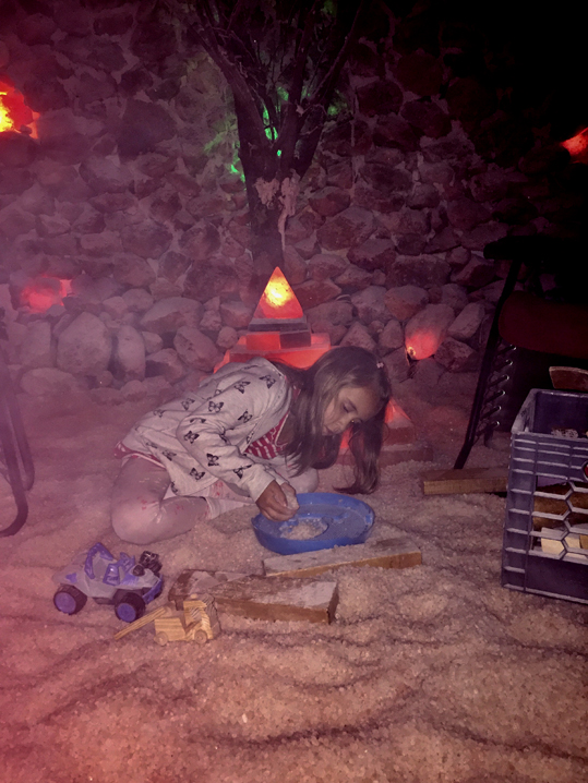 Comme j’y étais avec ma fille, vous devinez que je n’ai pas dormi. Cependant, les propriétaires ont aussi pensé aux jeunes et ont mis à leur disposition des jouets de sable afin qu’ils fassent des montagnes de sel. Ma fille a beaucoup aimé son expérience et en a aussi profité pour lire son dernier roman favori.