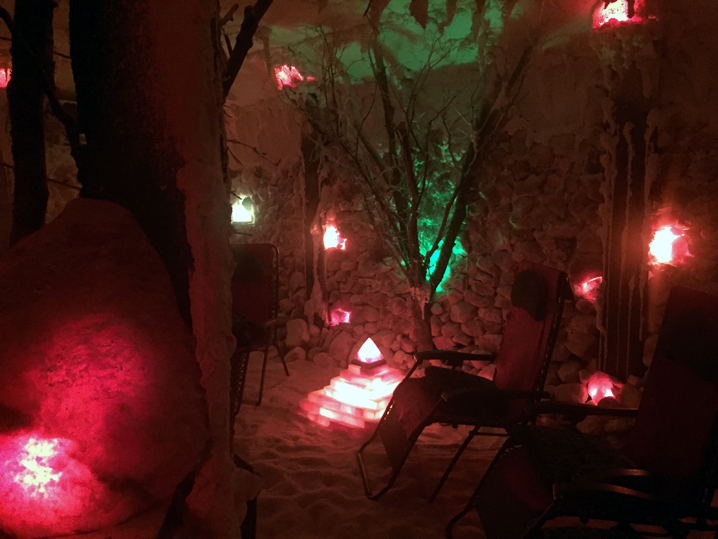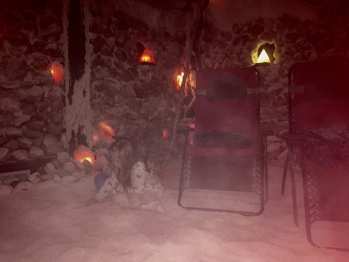 D’abord, étant asthmatique (et ma fille aussi), j’avais déjà lu sur les bienfaits du sel pour les bronches et les poumons. Je savais aussi que plusieurs pays dans le monde utilisaient cette technique, qui n’est cependant pas prouvée scientifiquement. Lors de mes dernières vacances en famille, j’ai donc décidé de tenter cette expérience. À la Vermont Salt Cave, aménagée dans une grange typique du Vermont, ce sont plusieurs sacs et blocs de sel qui ont été importés de Pologne afin de recréer une cave où tous les murs sont faits de sel. Comme si ce n’était pas assez, un ventilateur pousse aussi de la poudre très fine de sel lorsque vous êtes à l’intérieur.