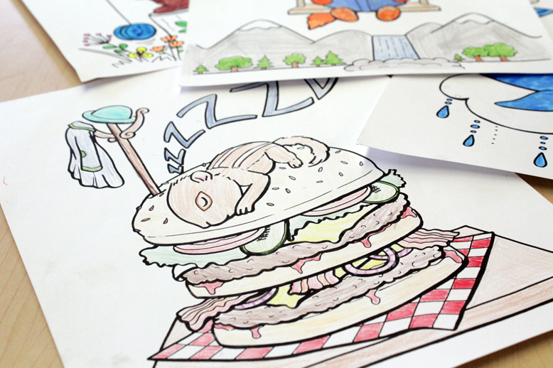 Durant l’émission, lors de chaque présentation d’un nouveau segment, vous aurez le plaisir de voir des enfants à l’œuvre, en train de mettre de la couleur sur les coloriages uniques de Marie-Anne Dubé de Jaune Pop. Si cela vous donne envie de colorier à votre tour, nous vous invitons à visiter notre section Coloriages, où vous pourrez imprimer gratuitement certaines de ses créations ou, encore mieux, à vous procurer son superbe cahier à colorier!