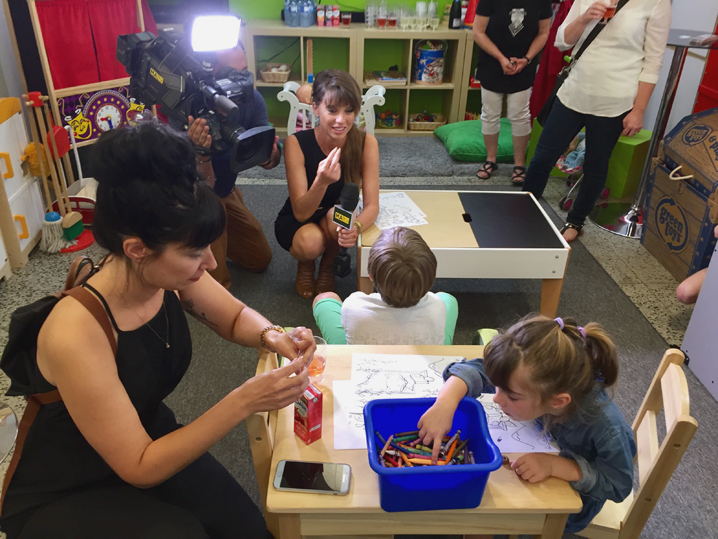 Le talentueux Nicola, en entrevue avec MAtv! Durant toute la soirée, en plus d’avoir accès à tous les jouets de la salle de jeux, les enfants sur place ont pu colorier des œuvres originales de l’illustratrice Marie-Anne Dubé de Jaune Pop (merci encore!)