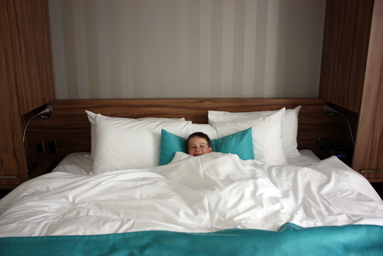 Notre petit homme a rapidement choisi la chambre avec le grand lit king! 😉