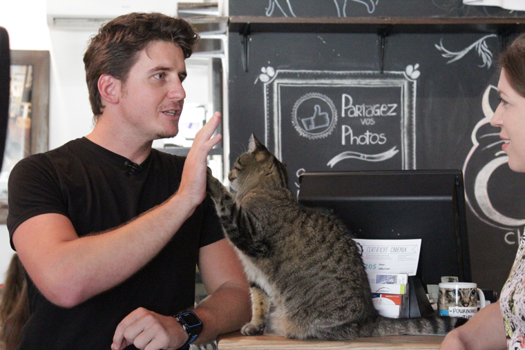 Pour débuter ce sixième épisode de Famille au menu, les frères Tristan et Colin nous donnent rendez-vous au Café Chat L’Heureux sur la rue Duluth à Montréal, qui est le premier «cat cafe» à avoir ouvert en Amérique du Nord. En plus de pouvoir y profiter de la compagnie de plusieurs chats, on peut très bien y manger et choisir parmi un menu végétarien coloré, frais et savoureux.