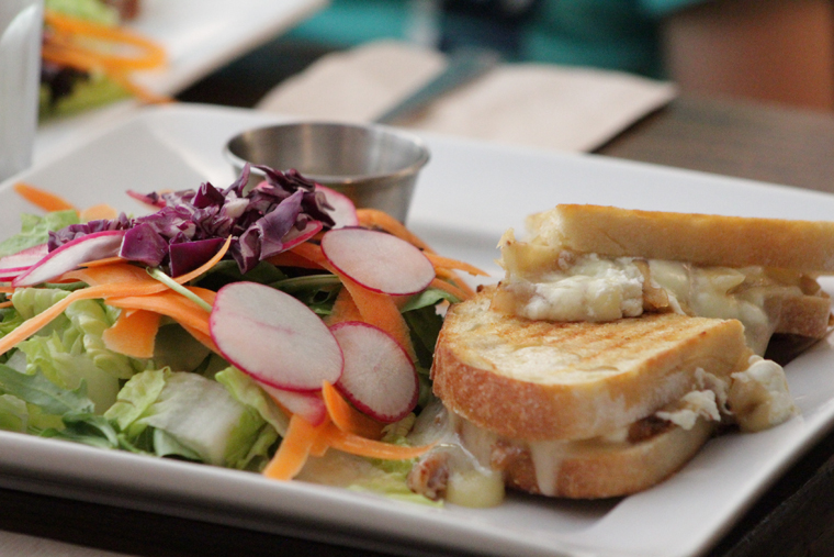 L’une de nos assiettes favorites au Café Chat L’Heureux: le «Cat Lady», un sandwich gourmet décadent sur pain de campagne avec tartinade de figue, fromage de chèvre et cheddar, miel et oignons caramélisés…