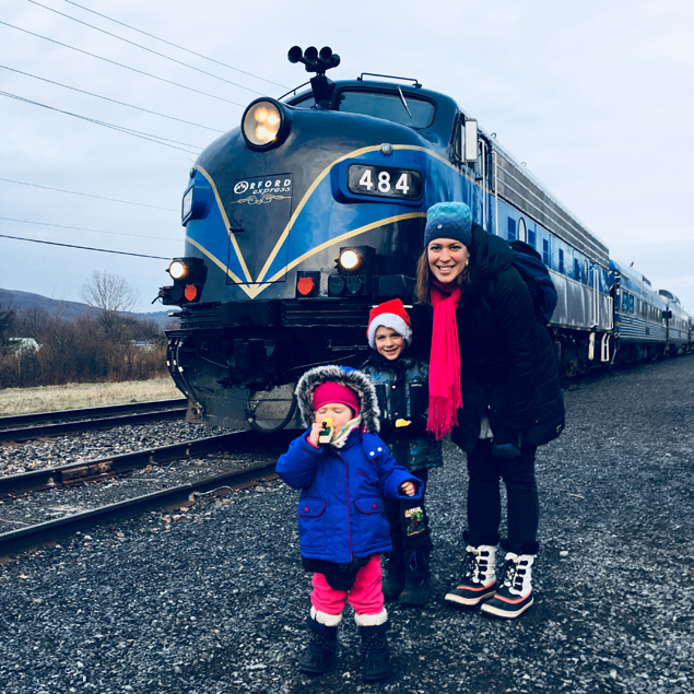 Pour l’une des premières fois, j’ai réussi à garder le secret jusqu’au bout! J’avais trop envie de voir la réaction de mon garçon de 5 ans, qui se passionne pour les trains, lorsqu’on allait lui apprendre que nous allions monter à bord du train touristique Orford Express de Noël! Sa joie et les étoiles dans ses yeux, ça n’avait pas de prix…