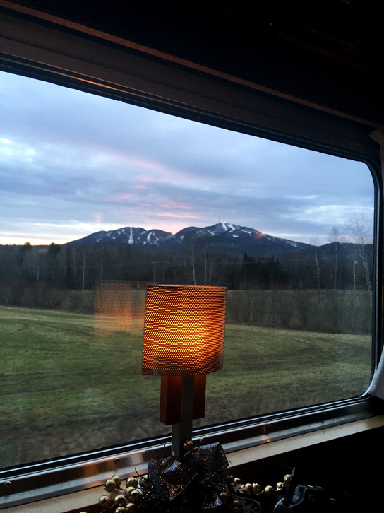 Nous avions choisi l’un des départs de Bromont à 16h, question de permettre à notre fille de bientôt 2 ans de faire la sieste en début d’après-midi et de pouvoir, du même coup, assister au coucher du soleil dans le train.