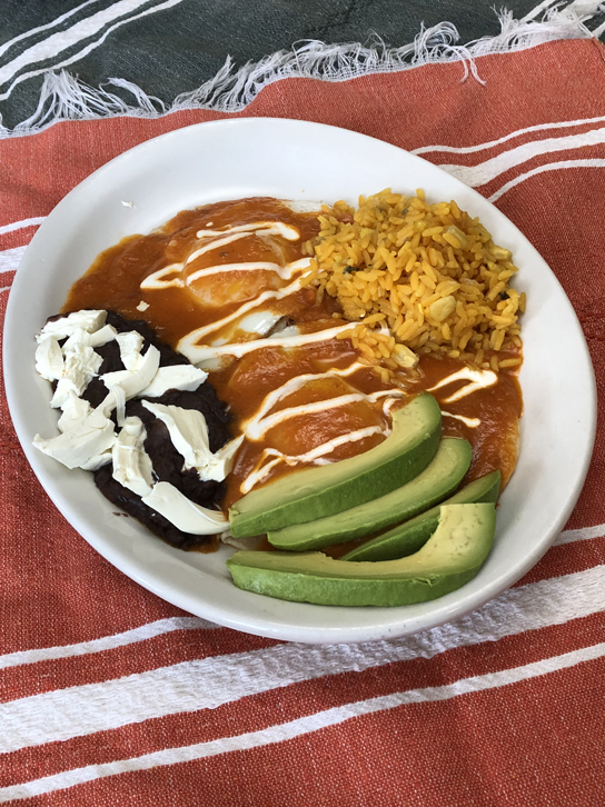 L’assiette de huevos rancheros: des œufs servis sur des tortillas avec une sauce aux tomates, du fromage et de la crème sûre.