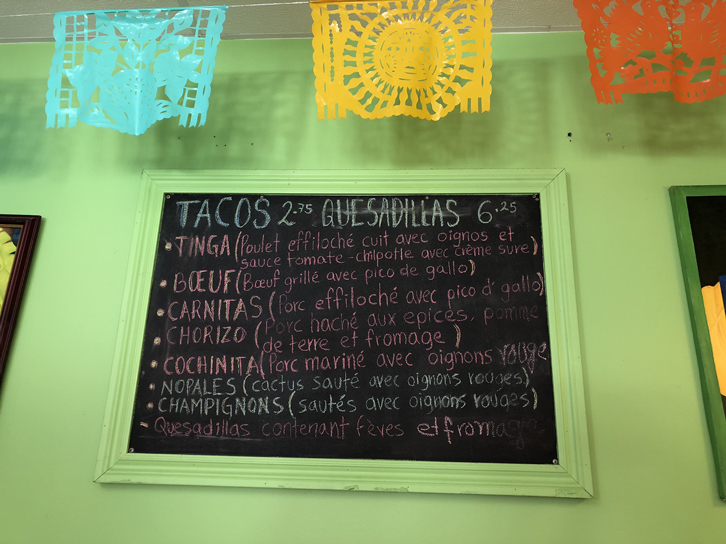 Nous avons ensuite poursuivi notre voyage avec David et Ismaël en allant manger de délicieux tacos à Montréal! Nous avions le bonheur de nous attabler chez Tacos Frida, un restaurant sans prétention au cœur du quartier Saint-Henri, qui propose une cuisine mexicaine authentique, abordable et délicieuse.
