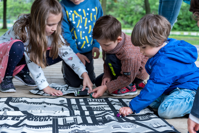 Nous utilisons d’ailleurs fréquemment le modèle grandeur «napperon» de son tapis de jeu, qui est parfait pour les sorties en famille au restaurant!