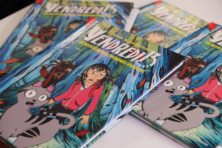 Publié aux éditions Petit homme, cette bande dessinée surprenante de Mathieu Potvin et Chloé Varin nous transporte dans un univers imaginaire rempli de suspense. On tente de découvrir les mystères des nombreux personnages qui gravitent autour d’un petit chat qui est loin d’être ordinaire.
