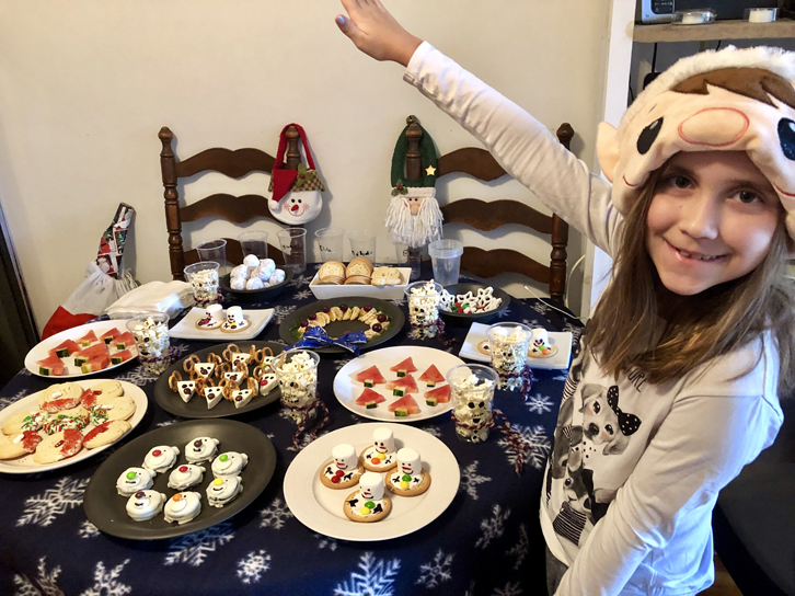 Alors que ma fille n’avait pas vu ses amis pendant les vacances des fêtes, elle désirait organiser un party hivernal afin de les recevoir avant le retour à l’école. Bien entendu, elle leur avait préparé un petit buffet. Voici, en vrac, ce qu’elle leur a offert: