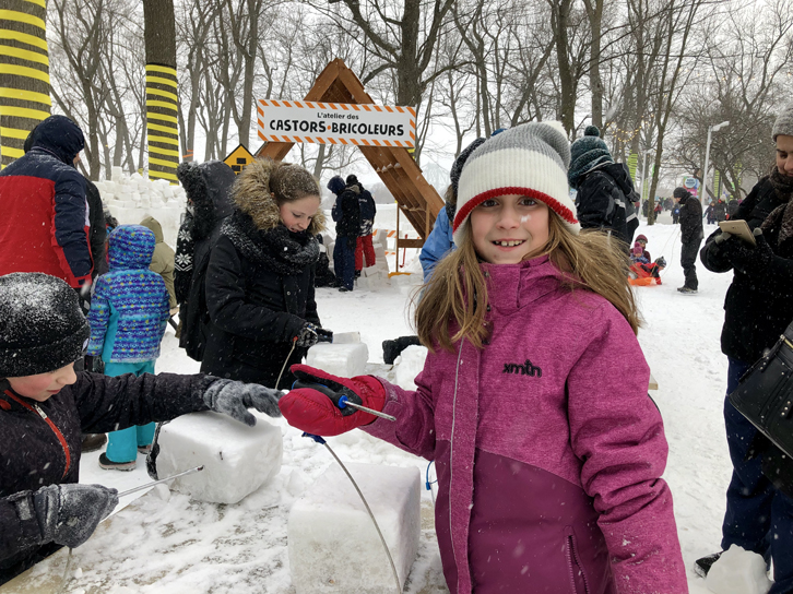 Mélodie a bien aimé sculpter sa propre sculpture de glace, mais aussi se reposer dans l’espace « plage » très rigolo.