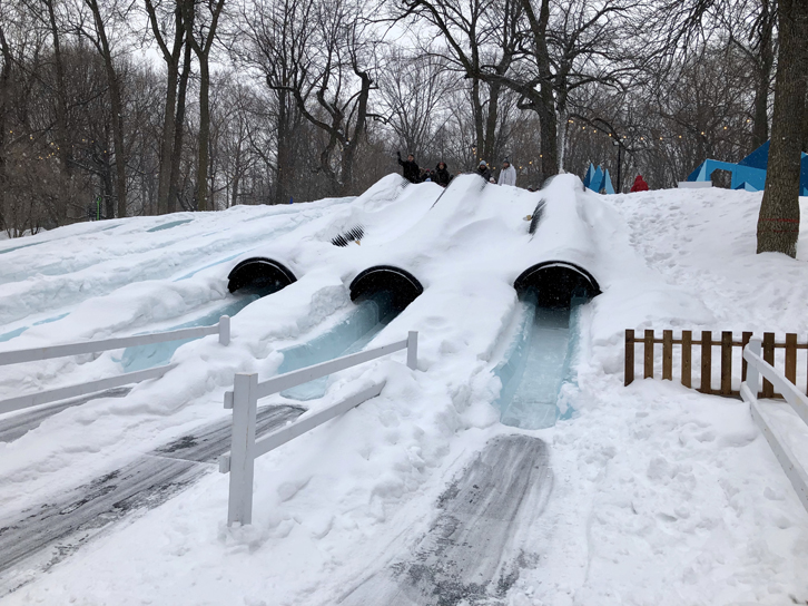 Cependant, son coup de coeur (si on exclut la rencontre avec ses idoles) reste les glissades sur glace. Cette partie de la fête des neiges est payante, mais elle en vaut la peine. Vous pourrez vous amuser avec des luges (fournies) dans plusieurs glissades sur glace. Prenez votre courage à deux mains et allez glisser directement sur vos salopettes dans certaines glissades qui ont même des tunnels et vont très vite!