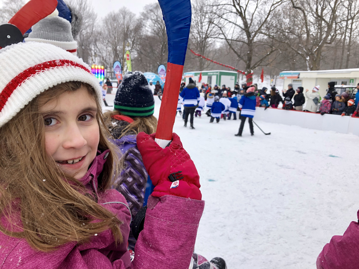 En fait, c’est elle qui m’avait demandé d’aller à la Fête des neiges cette année, parce qu’elle savait que les animateurs de son émission préférée, Cochon dingue, diffusée à Télé-Québec, allaient y être pour un match amical de hockey bottine. Et elle n’a pas été déçue!!! En effet, les animateurs ont été d’une grande gentillesse et d’une générosité exceptionnelle alors qu’ils ont pris le temps de parler avec les enfants et de prendre des photos. Je suis certaine qu’elle se souviendra longtemps de ce moment…