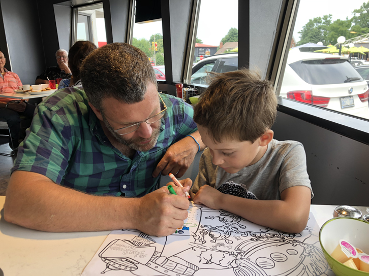 Nous avons vite réalisé que ce restaurant est très populaire auprès des locaux, particulièrement pour le brunch. Les enfants y apprécient bien sûr l’originalité du décor, ainsi que le beau menu à colorier qu’on leur offre.