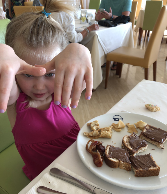 Elle tenait à vous montrer sa couleur de la journée, ainsi que son déjeuner nutritif… 😉