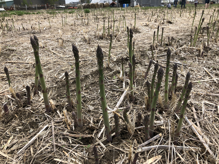 Comme les asperges poussent très rapidement, on doit récolter celles qui sont les plus longues et qui dépassent la longueur d’un couteau.