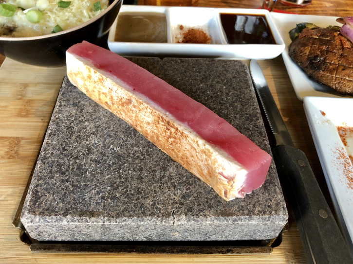 En plein centre-ville, c’est le restaurant L’Amalgame qui a retenu notre attention. Ce pub urbain offre une belle sélection de drinks dont un Bloody Caesar de luxe fort apprécié! Il innove aussi avec la black rock, une sorte de pierre sur laquelle on fait cuire notre viande ou notre poisson, ici un thon délicieux.