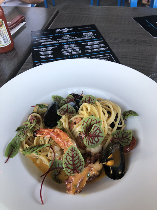 Le linguini aux fruits de mer grillés avec, entre autres, des moules, des crevettes géantes et de la pieuvre…