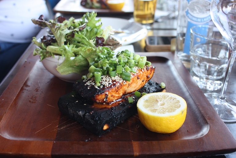 Si vous aimez manger vos fruits de mer avec un peu de piquant, choisissez au menu le linguini aux fruits de mer grillés, chorizo et sauce piri piri: la portion est idéale pour une personne. Nous avons aussi beaucoup apprécié le saumon sur planche de cèdre laqué à l’érable ainsi que le steak coupe Kansas.