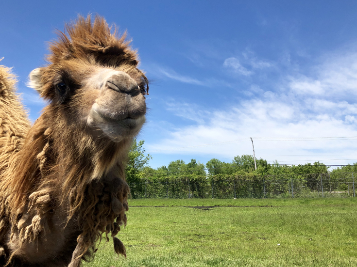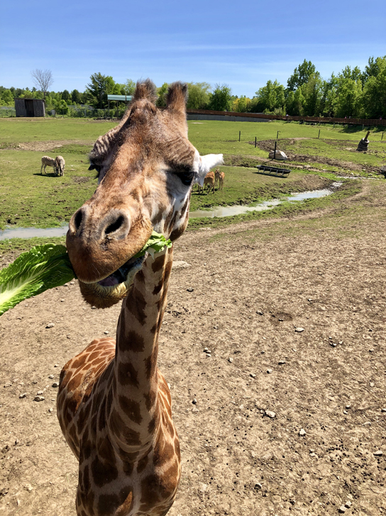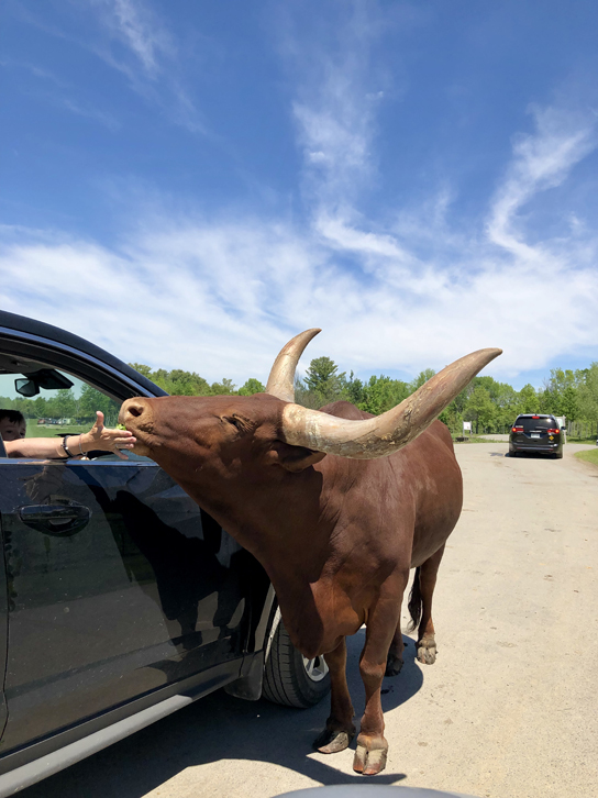 D’abord, il y a le traditionnel parcours en voiture où on peut donner de la laitue (ou de la nourriture vendue au parc) aux animaux des quatre coins du monde. N’hésitez pas à y aller tôt – ou tard – alors qu’il y a moins d’achalandage. Vous verrez mieux les animaux et vous pourrez vous en approcher – si vous l’osez! En effet, certains d’entre eux sont vraiment impressionnants!!! Et ne soyez pas pressés, car vous êtes sur leur territoire. Si les bisons décident qu’ils font une petite pause en plein milieu de la route – comme ce fut notre cas – eh bien vous attendez votre tour!