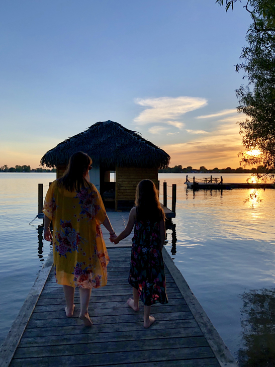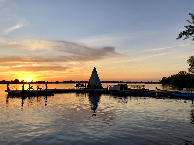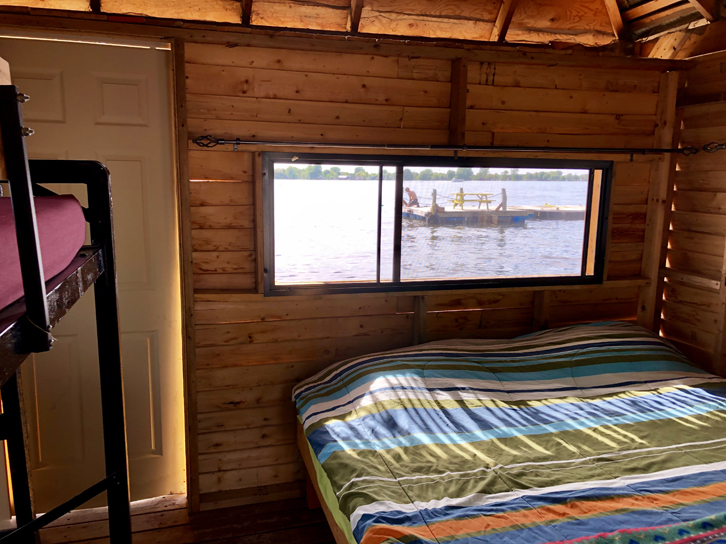 Dans ces dernières, vous trouverez un lit double ainsi que deux lits simples superposés. Il y a un petit réfrigérateur, de la vaisselle, un bbq (mais vous devez apporter votre bonbonne de propane), l’électricité et même un accès wifi! Vous aurez aussi une table à pique-nique directement sur votre quai flottant. Vous voudrez y passer des heures! Nous ne recommandons cependant pas les huttes et les tipis sur l’eau avec de très jeunes enfants, car les terrasses flottantes ne sont pas sécurisées… et que c’est quand même sur la rivière Richelieu!