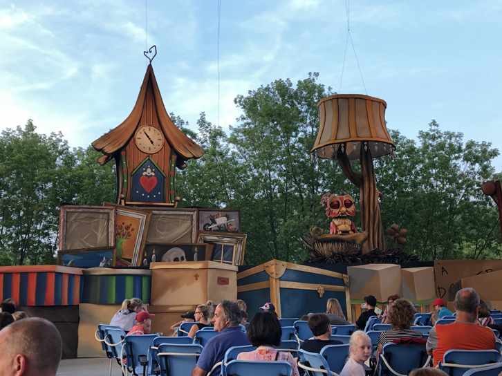 Le nouveau spectacle Le Grand Bric-à-Brac vous transportera dans un monde imaginaire où une panoplie d’objets et de jouets se retrouvent à la rue et s’interrogent sur leur destin. Comme le théâtre est extérieur, n’oubliez pas de mettre du chasse-moustique. S’il fait plus frisquet, les sièges pivotants sont munis de bretelles chauffantes et l’on vous proposera, à l’entrée, d’emprunter gratuitement des couvertures: on a pensé à tout! Nous avons beaucoup apprécié de pouvoir rencontrer les marionnettistes et de voir l’envers du décor tout de suite après le spectacle… À découvrir absolument!