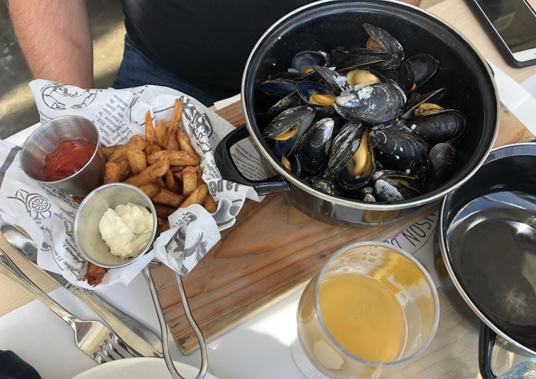 Total coup de coeur pour la poutine homardine, dont la sauce est une bisque de homard crémeuse… On accompagne le tout d’une sangria à base de vin de rhubarbe gaspésien!