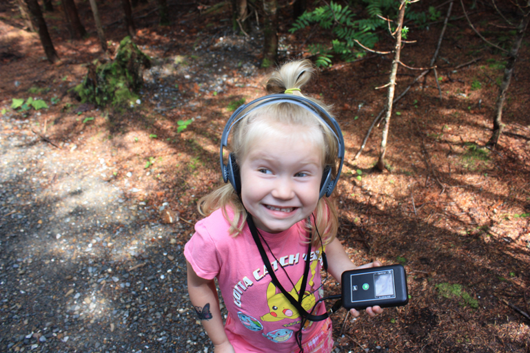 À notre arrivée, nous avons été jumelés à d’autres visiteurs pour former un groupe d’environ une quinzaine de personnes. Le fait de vivre l’expérience par petits groupes nous permet vraiment de mieux s’imprégner de la nature autour de nous. On nous a tous remis un petit appareil audio et des écouteurs, pour que l’on puisse suivre avec attention chacun des tableaux présentés: les enfants étaient bien heureux d’avoir les leurs!