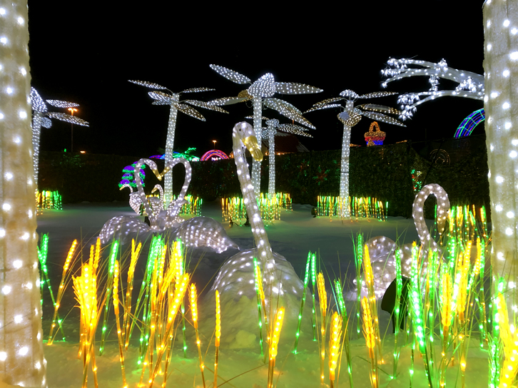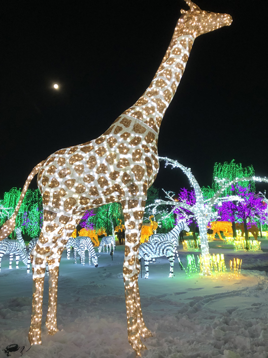 Pour notre part, toute la famille a particulièrement apprécié les insectes et les araignées rouges de « Feliz Navidad », les magnifiques « Pôles à l’infini », où l’on côtoie des pingouins et l’on peut entrer dans des igloos, faire un tour sur les chevaux blancs du carrousel mécanique de la « Grande Place », sans oublier les girafes, les zèbres, les éléphants et les flamands roses de la « Savane multicolore ».