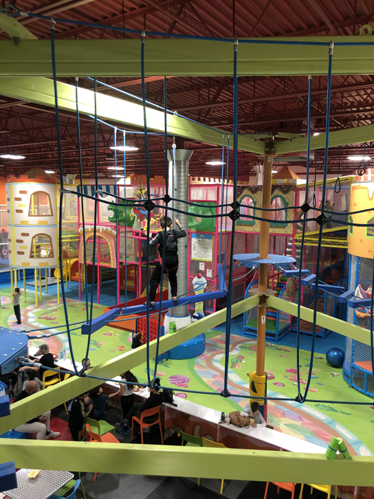 Malgré le fort achalandage, le plafond élevé, chez MégaMaze, fait en sorte que l’on ne se sent jamais écrasé par le bruit des enfants qui jouent…